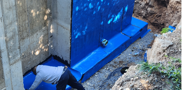For the ultimate in multi-layered waterproofing system, bentonite clay is laminated on both sides of virgin HDPE membrane to form a waterproof barrier on both surfaces. This will eliminate water migration between building layers. The toughest projects (such as blindside installations, shotcrete lagging, underslab floors, and elevator pits under hydrostatic conditions) require an unmatched waterproofing system, with multiple layers in one membrane.